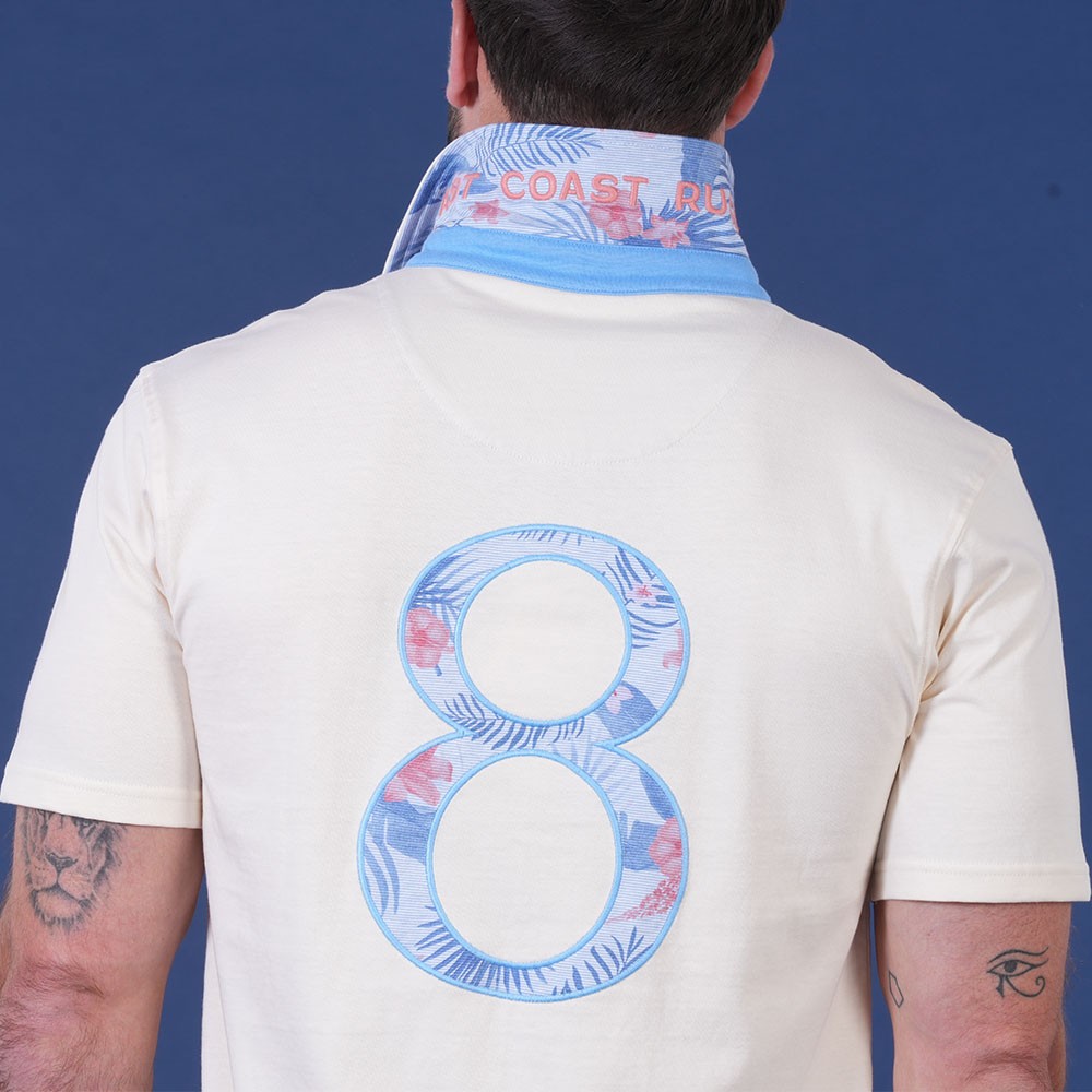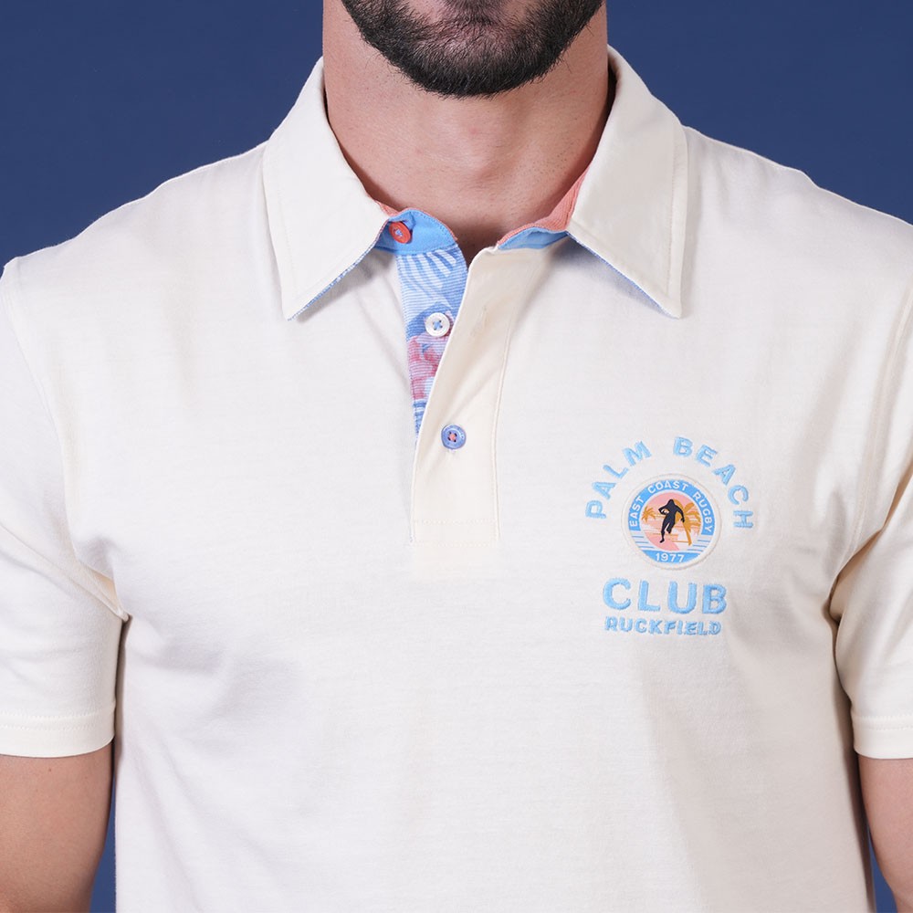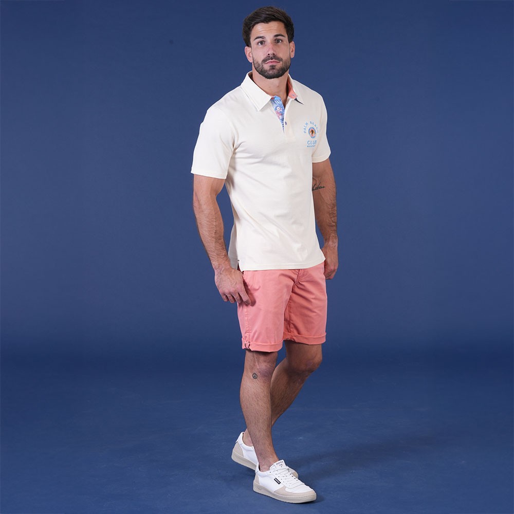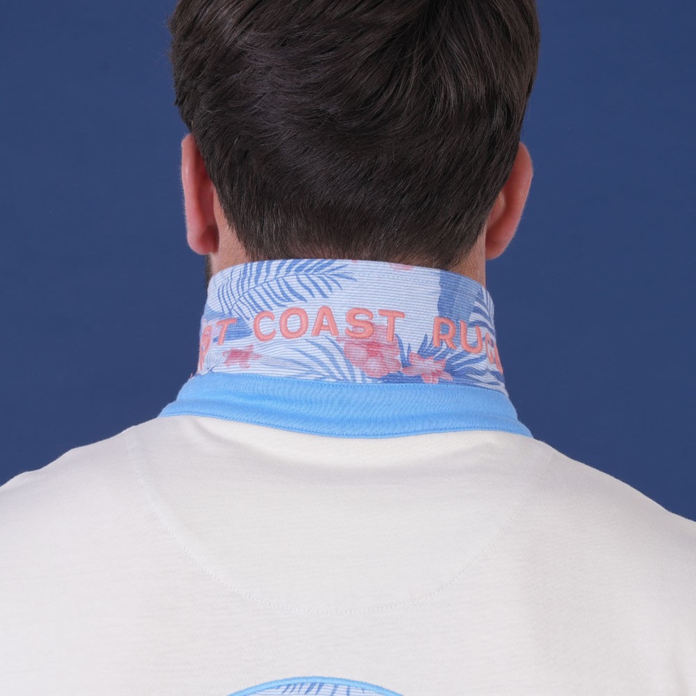 Patte de boutonnage et revers du col contrastés
