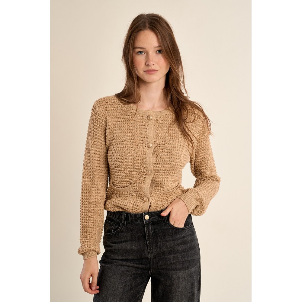 Cardigan en maille, col rond -Manches longues -Poches plaquées sur le devant -Fermeture par boutons sur toute la longueur devant -Longueur depuis l'épaule 55cm pour une taille S"