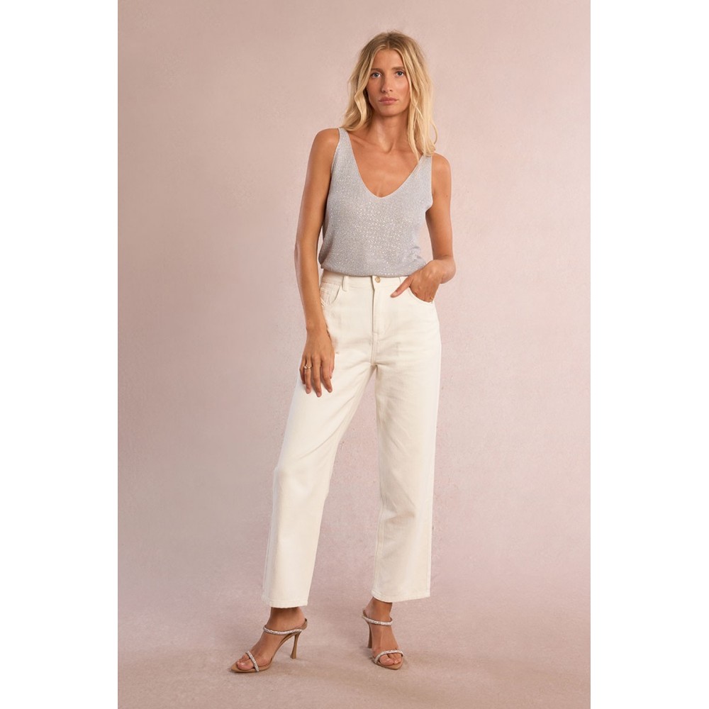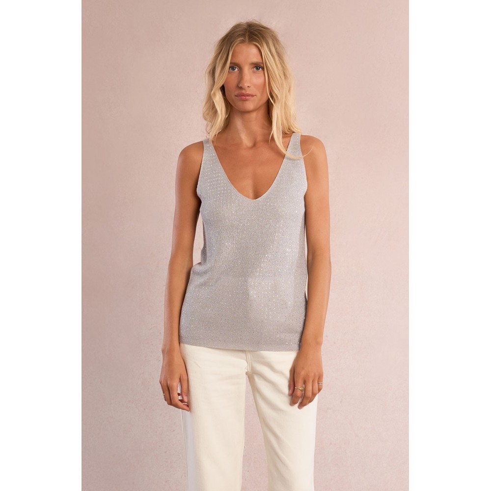 Débardeur à larges bretelles à strass -Encolure V -Coupe droite -Longueur depuis l'épaule pour une taille