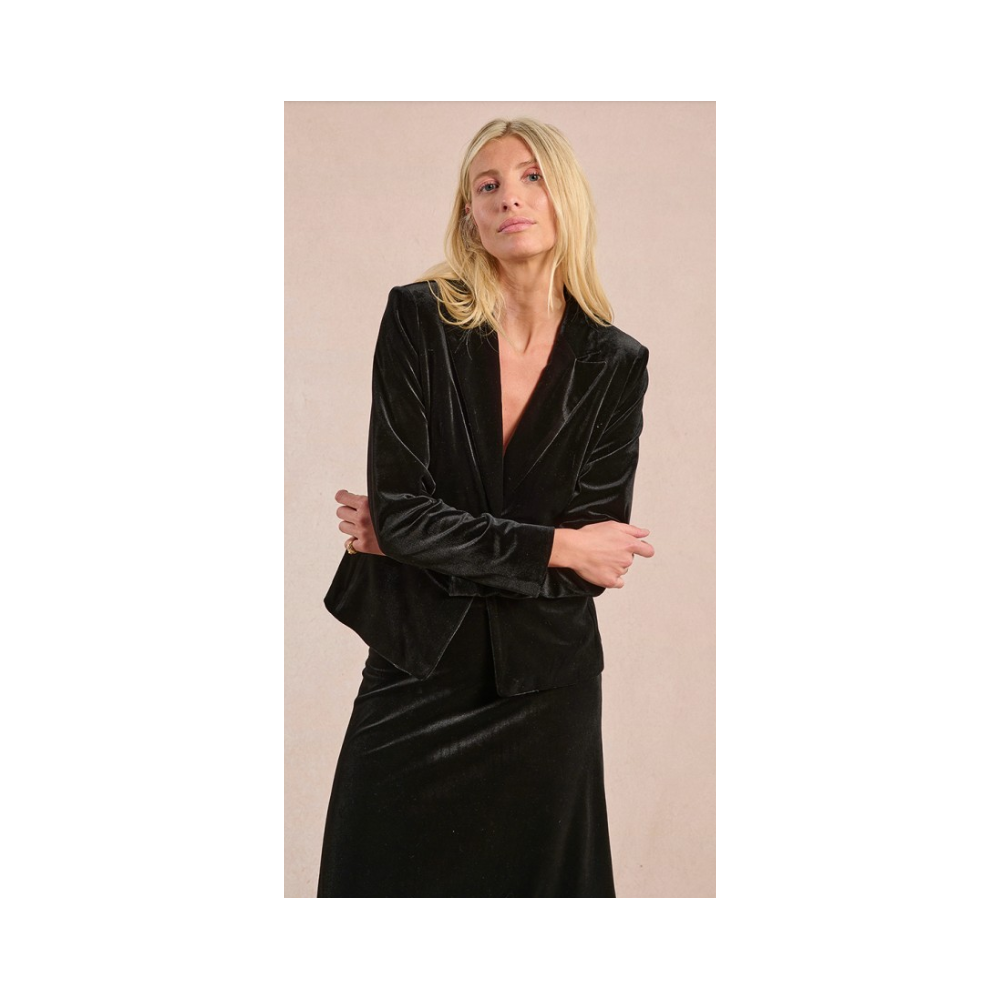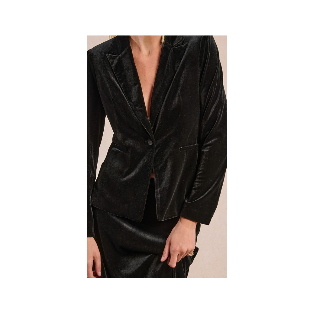 "-Blazer droit en velours -Manches longues -Large col tailleur -Fermeture par un bouton -Doublé -Poches passepoilés sur les côtés devant -Longueur depuis l'épaule 61cm pour une taille S"